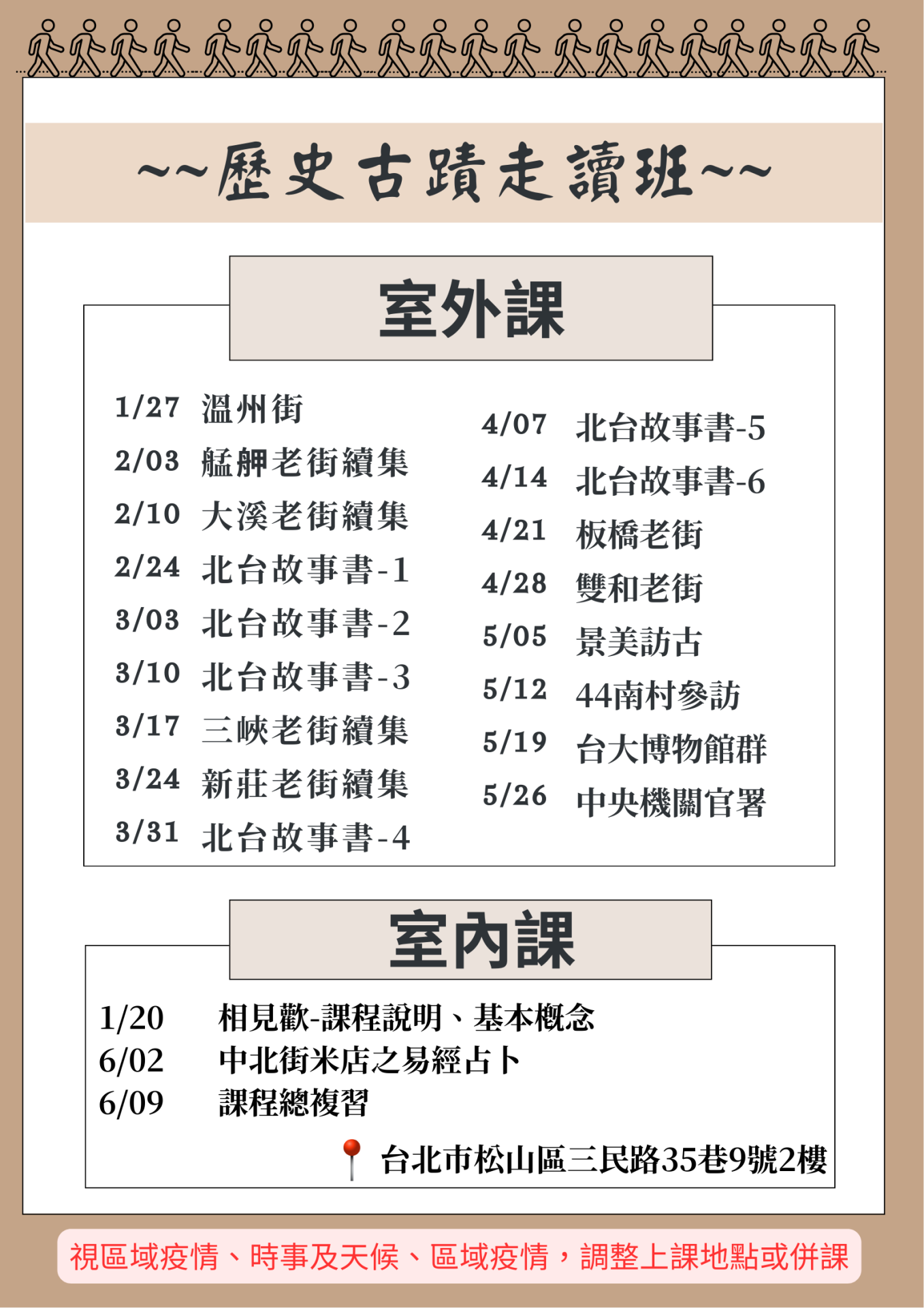 因天候狀況等,會調整上課地點或併課