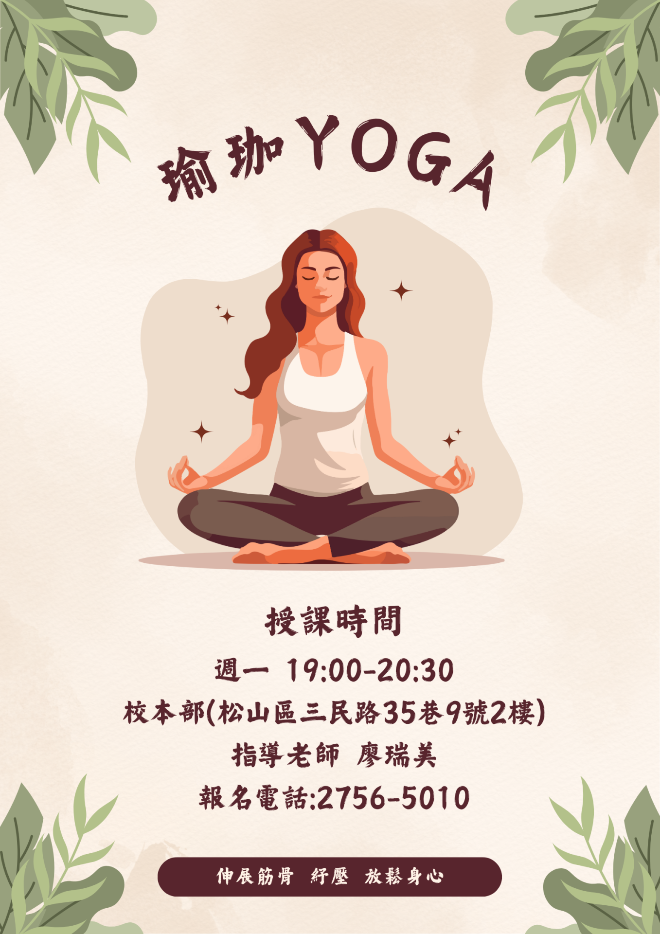 瑜珈以舒緩神經為主,強調全身伸展的動作,讓筋骨舒展開來,在老師的帶領下,一堂課下來,會像做一節全身按摩一樣舒服;太多人因為忙碌,常肩頸痠痛、腰酸背痛,建議可從舒緩瑜珈開始,養成運動習慣,保持活動力,鎮定神經放鬆身心。