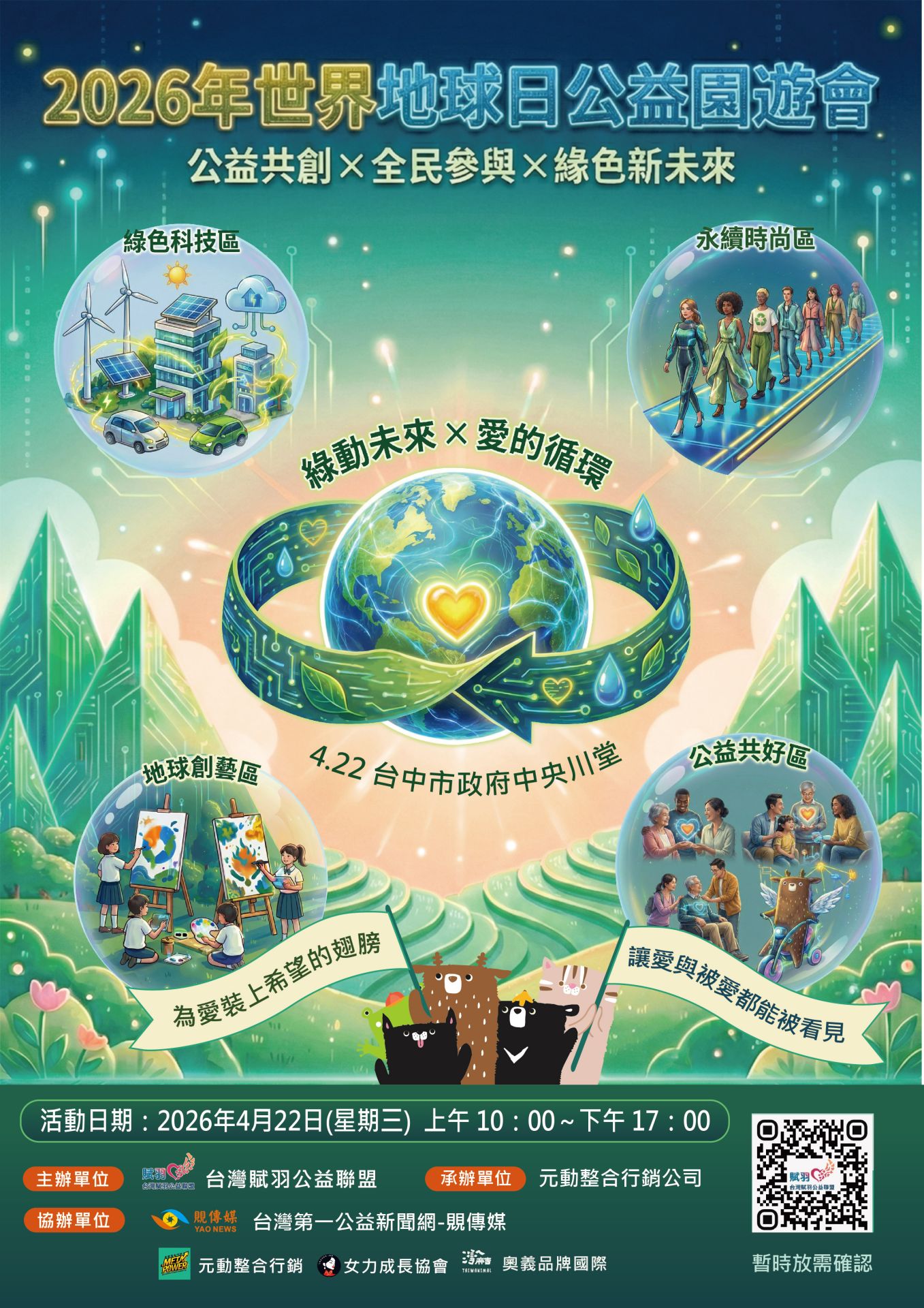2026年以「愛心賦能 × 永續擴大」為主軸,打造結合科技、行銷、教育與公益的新典範活動,將世界地球日轉化為全民具象參與的社會運動。